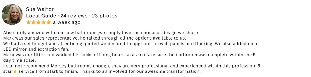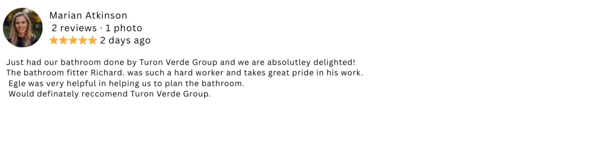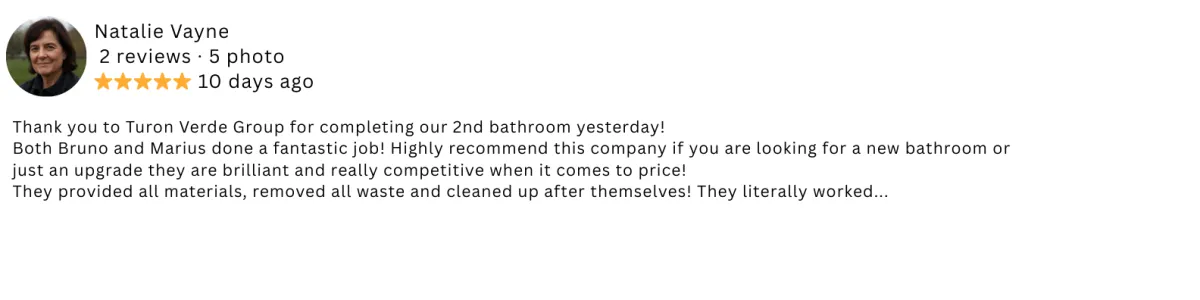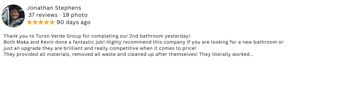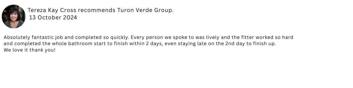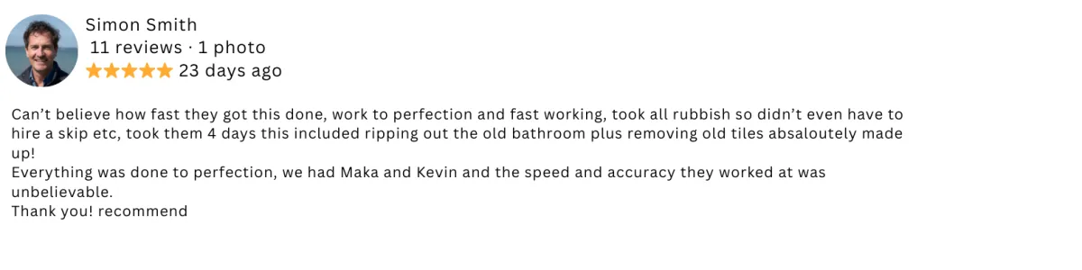 "They redid our whole bathroom in just 4 days with smart PVC panels. Took out the old stuff and fitted everything new. Highly recommend!"