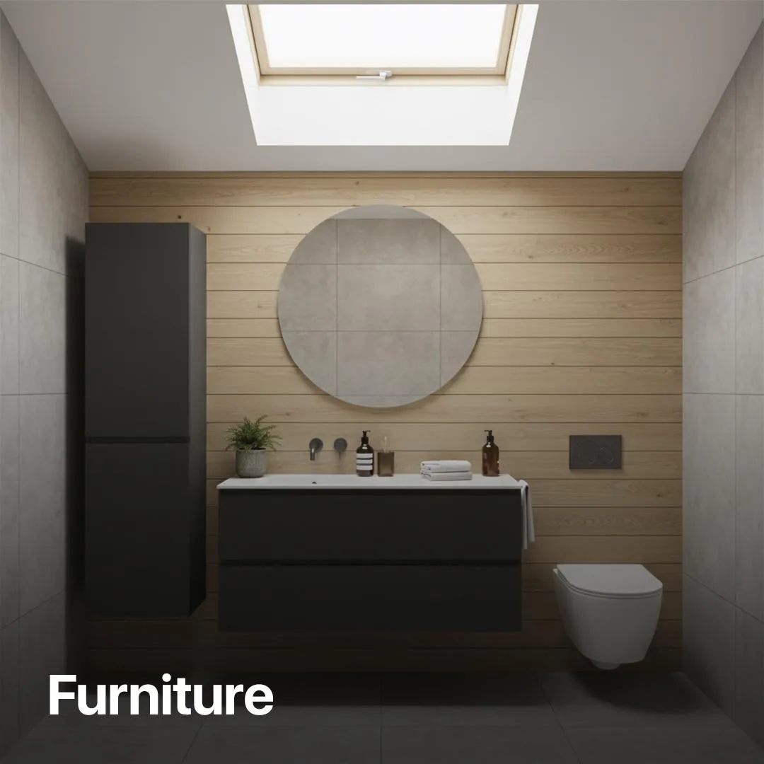 Fully fits a new, modern bathroom with PVC wall panels.